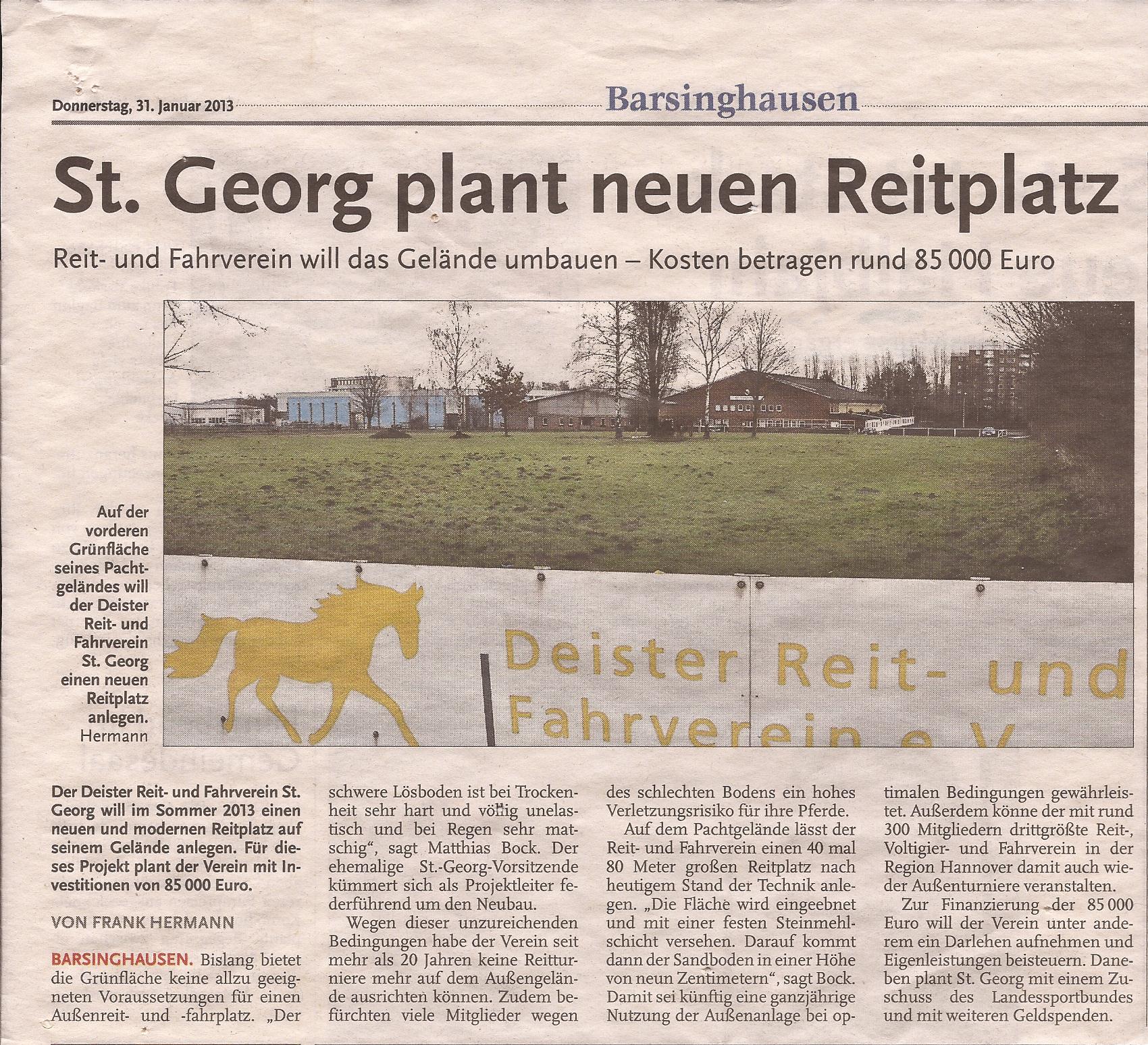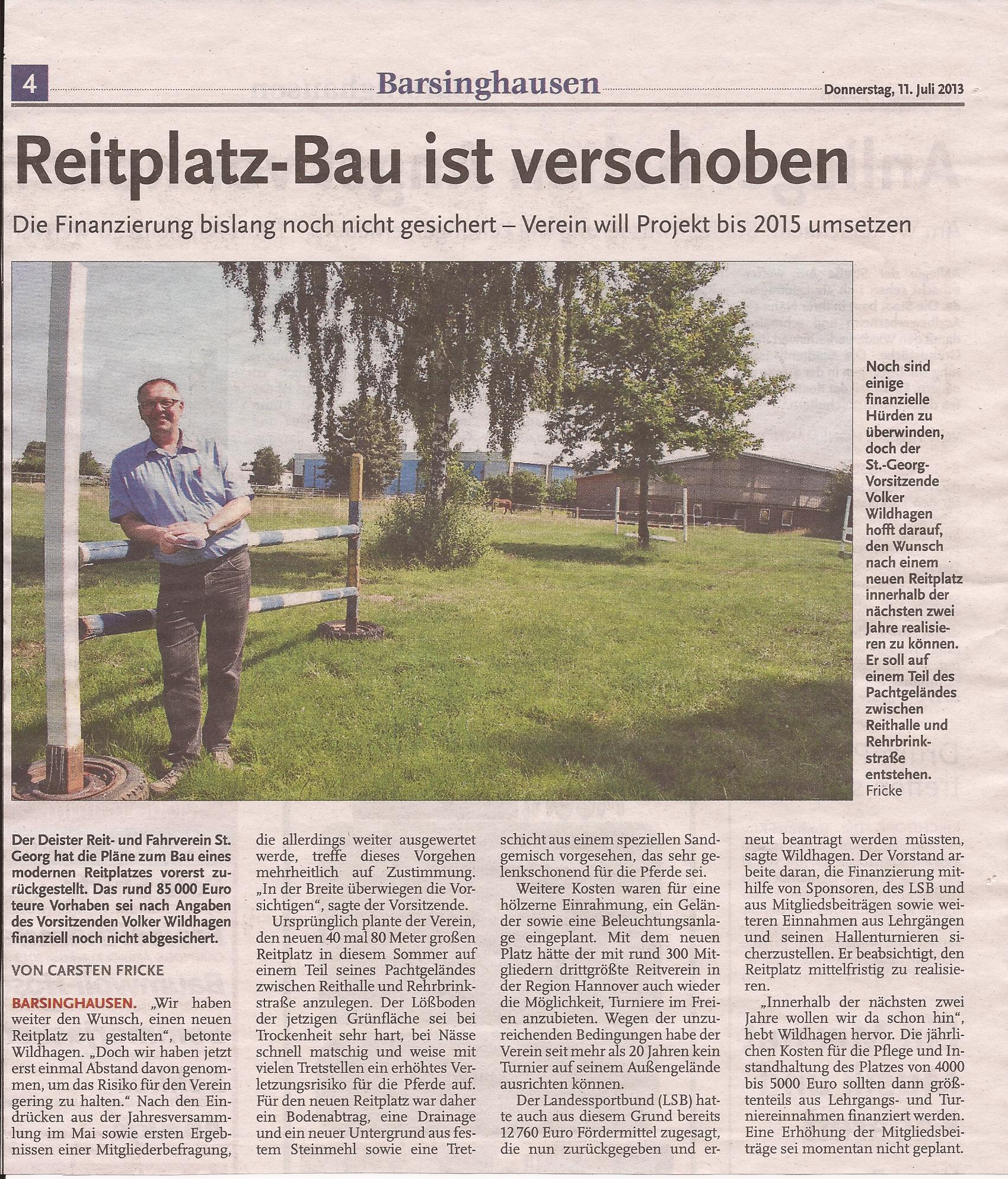 Reitplatz-Bau ist verschoben (Calenberger Zeitung)